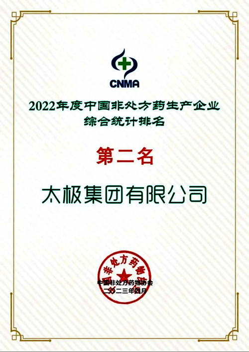 Ì«¼«¼¯ÍÅÈÙ»ñ¡°2022Äê¶ÈÖйú·Ç´¦·½Ò©Éú²úÆóÒµ×ÛºÏͳ¼ÆÅÅÃû¡±µÚ¶þÃû£¬£¬£¬£¬£¬¹²¼Æ20¼ÒÆóÒµÉϰñ¡£¡£¡£¡£¡£¡£